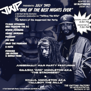 JUGGERNAUT WAR PARTY & Friends - July 3 @ Knitting Factory JUGGERNAUT WAR PARTY (JWP), led by Brooklyn's Qaasim &...