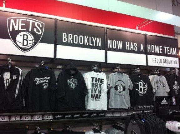Brooklyn has a new home team – The Brooklyn Nets! They recently premiered their new logos & apparel, at a Models, on Flatbush Ave across the street from the stadium. Coach Avery Johnson, General Manager Billy King, Bruce Ratner, Borough Pres Marty Markowitz and team member Brook Lopez (wow, his name is almost “Brooklyn”), spoke at the unveiling of the logo and several tee shirt and hat designs.
