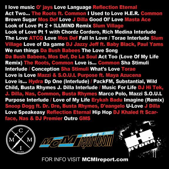 Now in 2014, on Valentine’s Day, we present yo you … “The LOVE IS Mixtape”, mixed by DJ GMS, with a special intro from LR Blitzkrieg and testimonials from Masta Ace, Torae, Sha Stimuli, PackFM, Substantial, Chordz Cordero, Rich Medina, DP One, WildChild and many more, talking about what Hip Hop means to them.