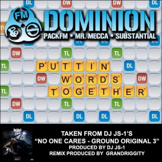 If you didn’t already know, MCMI Inc. and all of its divisions was built by well…MC’s (MC am I..get it?”) and those MC’s are also members of the 12 person super crew THE PLAGUE. Now of that crew, 3 members (Pack FM, Substantial, and Mr.Mecca) form Dominion, who have laced this new track “Puttin’ words together” off DJ-JS1‘s new album “No one cares” Check out the original here and download the official remix over at QN5.com