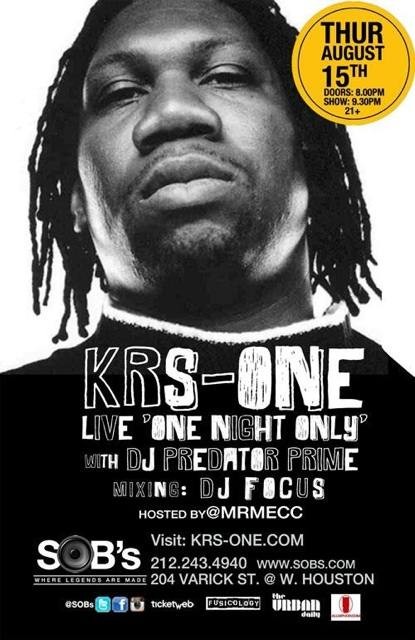 As we celebrate the 40th Birthday of Hip Hop, let’s celebrate one of the Gods of Hip Hop, the man who said “I Am Hip Hop” and “Rap is something you do, Hip Hop is something we Live!” Here, this video will remind (or edu-tain) you what KRS ONE contributes to Hip Hop culture. If you are in New York, come through to SOBs tonight and prepare to be amazed that the “Blastmaster” still has it! And hosted by none other than MCMI’s own @MrMECC!