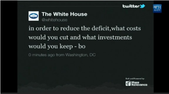 In Obama’s Twitter Town Hall Meeting, in essence, the “crowd” is shouting out questions (by tweeting them) to Obama, challenging him to incorporate – answer them – on the spot, off the top, with no rehearsal, in his conversation with the nation. You have to applaud him for doing that, because it’s risky for any politician. What if you stumble? What if you don’t have a pre-prepared answer that you rehearsed all last night, like most debates in which the questions are known far in advance and the politician (and/or his advisors) have time to prepare exactly what they want to say.