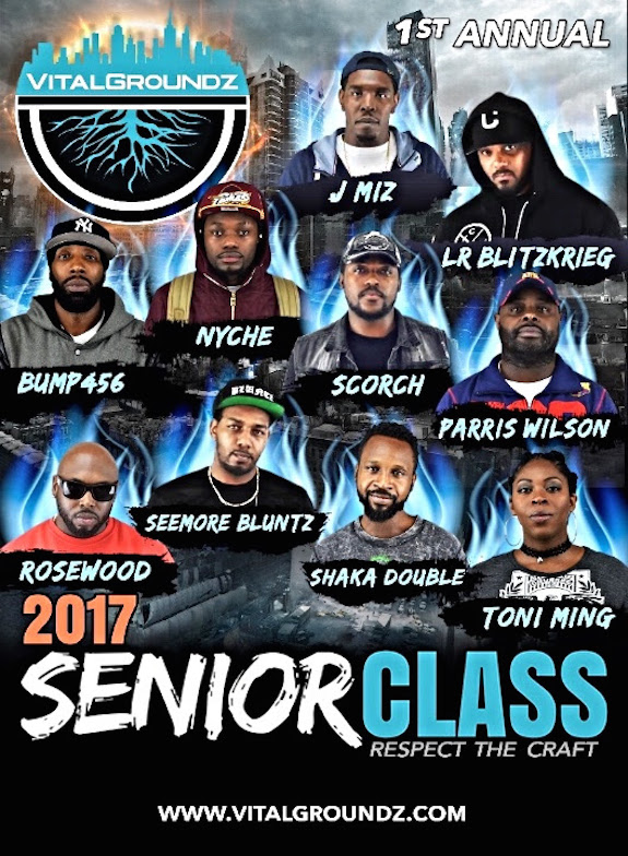 That being said, the MCees featured in the first VitalGroundz Senior Class are not ancient, it’s just that VitalGroundz doesn’t feel the requirements for being a “hot new artist” includes being a teenager, nor should it be based on social media stats, or other superficial measurements that don’t really have anything to do with whether or not a song or an artist is “good Hip Hop music“. Instead, VitalGroundz looks at lyrics, content, wordplay, skill, pure readiness and unique style. One perfect example of this is MCMI’s own LR Blitzkrieg, who is one of this year’s 10 featured MCees, who has put in several guest appearances over the years and is known on the NY underground Hip Hop scene, but is just about to drop his debut solo project, “OuttaNowhere“, in the next few months.