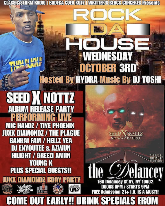 If you are in NYC you can attend the NO WAY IN HELL Album Release Party tonight at The Delancey, part of the Rock Da House series, presented by Doc Ahk, Mic Handz and DJ Toshi. The line up is sick, admission is free and there’s drink specials early.