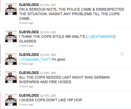 Last night at Tammany Hall in New York City, Smif-N-Wessun and Pete Rock celebrated their critically acclaimed collaborative album “Monumental” on Duck Down Records. Word is the concert was going great with fans and celebrities enjoying the good vibes,music and success of another true hip-hop project, but the venue was over crowded and at some point during the night a fight broke out outside the venue. At this time NYC police decided for no good reason to storm the venue and aggressively toss everyone out into the streets. Once the rightfully aggravated party goers were outside all hell broke loose as the NYPD violently attacked artist and patrons alike.
