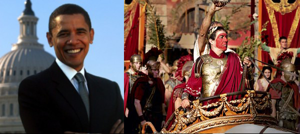 Still, this is what people were waiting for, for a long, long time. Many people were mad that George Bush Jr didn’t accomplish this on his watch. This makes Obama a hero, in the eyes of a lot of people. Democrats were worried that right wing attacks on Obama’s presidency would weaken his image enough for a Republican to win in the next election. The countries reaction to this news Sunday night, going into Monday morning, is reminiscent of a war time president or even emperor, as in the days of Julius Caesar. When Caesar marched into Rome after being vicotorius on the battle field, he was cheered by the people. People love a wartime hero, a fighting King, a leading General. As commander in chief, Barack Obama is symbolically a wartime monarch returning from the battlefield wearing the blood of his enemy. (Interestingly, Jewish website WorldofJudaica.com called Obama “The new Julius Caesar for the Jews”; comparing America, with it’s 700 to 800 military bases worldwide, to the Roman Empire).