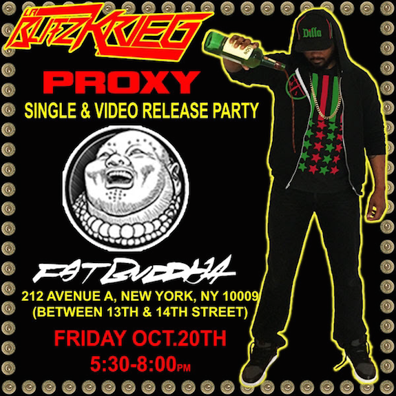 Friday Oct.20th 5:30-8:00 – Join the MCMI team at the release of LR Blitzkrieg‘s first solo single & video “PROXY“, at the best HIP HOP bar in New York city!