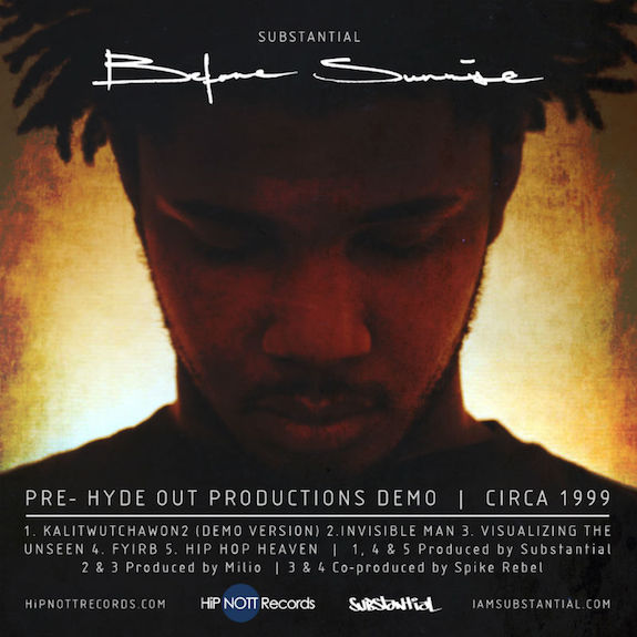 You can get The Past… [EP] on the usual iTunes, Spotify, DJBooth, etc. BUT purchase the album on Bandcamp and you get a bonus download of Substantial’s 1999 demo tape entitled Before Sunrise: Pre-Hyde Out Demo ’99! That’s 5 songs on The Past… + 5 songs on the Pre-Hyde Out Demo, for only $5. You can’t beat that.
