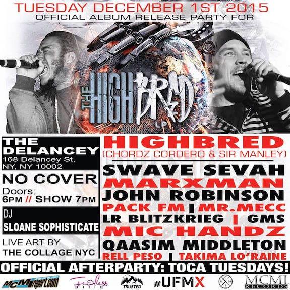 We are proud to announce the ALBUM RELEASE PARTY for The HighBred LP by Chordz Cordero & Sir Manley! The album drops onDec. 1st on MCMI Records / Intaphaze Records / Man@Work Productions.