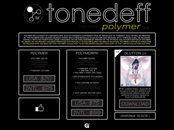 Known for innovative technology, marketing and branding methods, QN5 pulls out another “first” in the approach to Polymer. Each of the 4 EP’s will showcase a different facet of Tonedeff’s personality, a different theme, which when added together form a “larger … cohesive unit”. (*pause*) There’s a more scientific explanation on QN5.com: