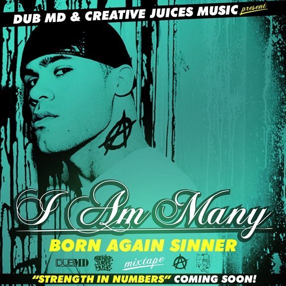 “Born Again Sinner” is the new mixtape from a true breath of fresh air in Hip Hop, I Am Many, as he teams up with Dub MD to bring you 17 tracks of thought provoking anarchy, the free download will be available online on May 2nd, 2011 and features production from 2 Hungry Bros, Logik Proof, Luminary and more.