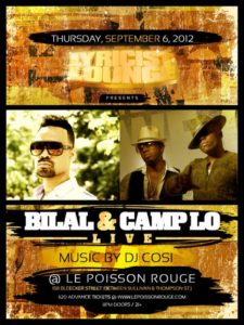 Thursday, September 6, 2012 LYRICIST LOUNGE Presents Special Live performances by BILAL & CAMP LO....!!!! @ Le Poisson Rouge 158...