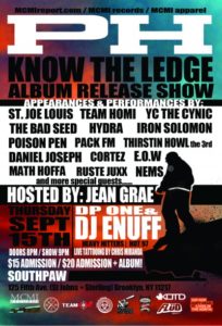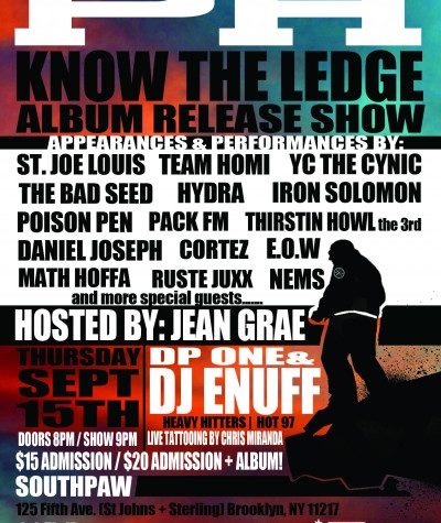 MCMI RECORDS presents PH (formerly Pumpkinhead) KNOW THE LEDGE ALBUM RELEASE SHOW! Thursday, Sept. 15th, 2011 hosted by Jean Grae...